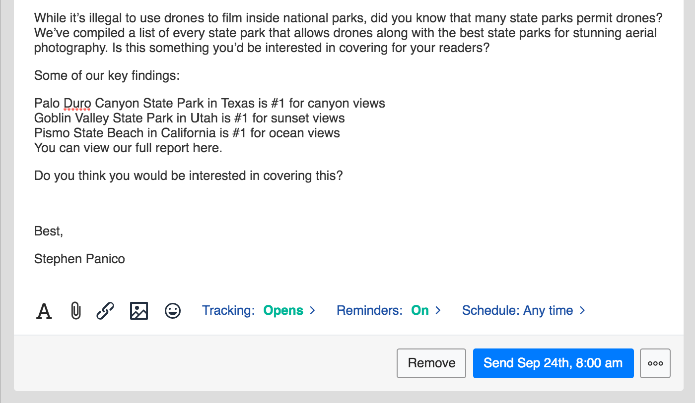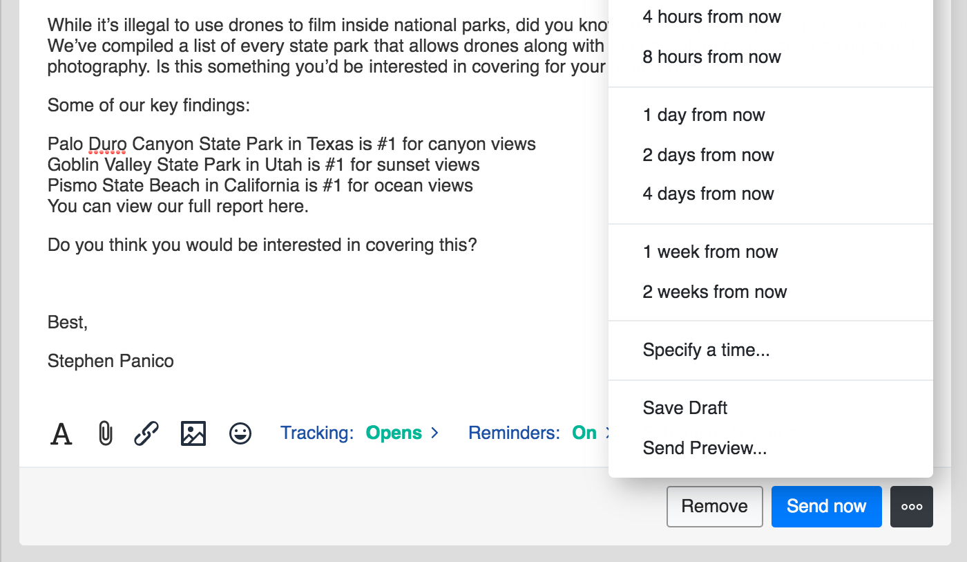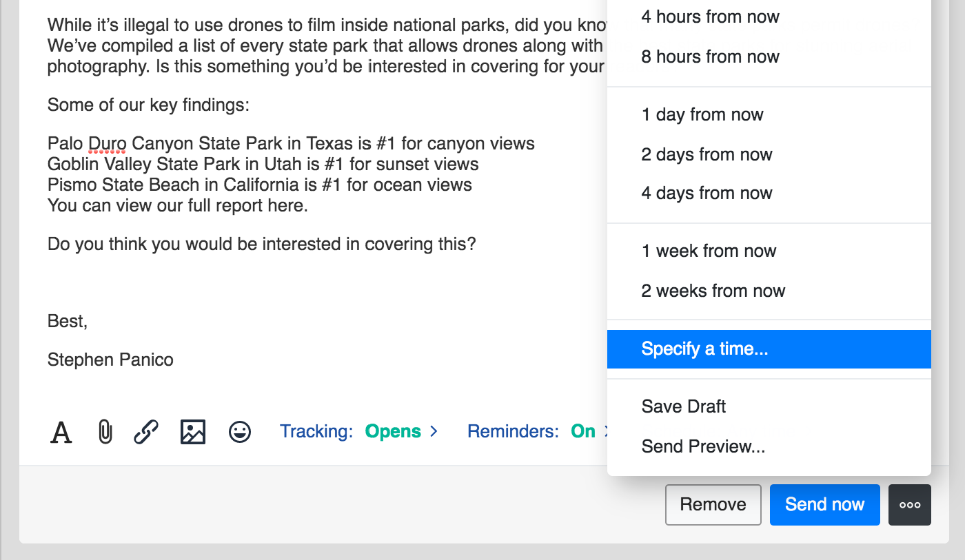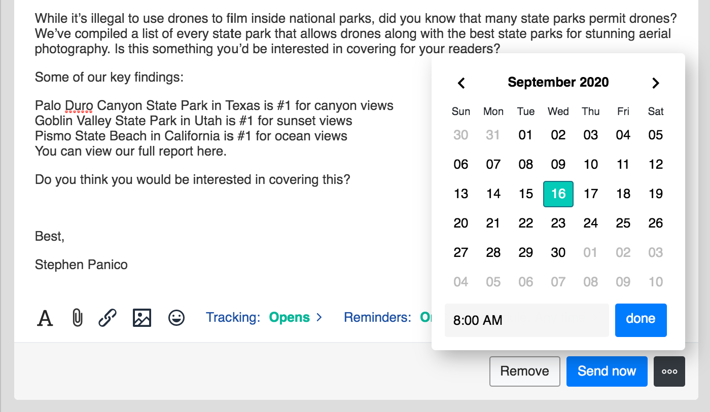Choose a time to send your outreach message, so your prospects receive your message at exactly the right time.