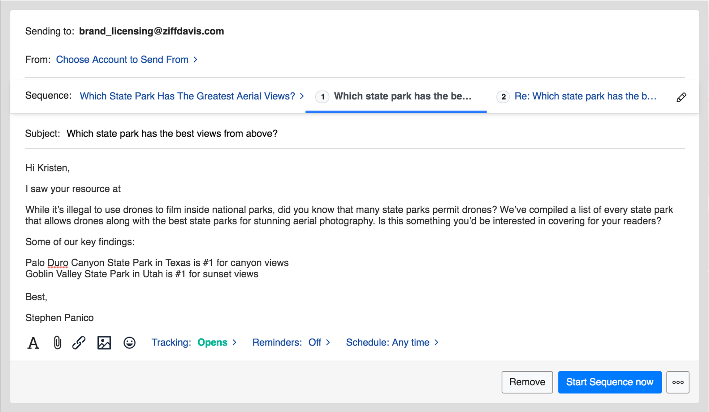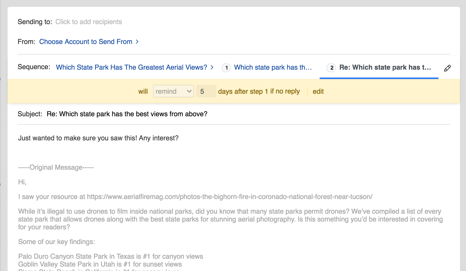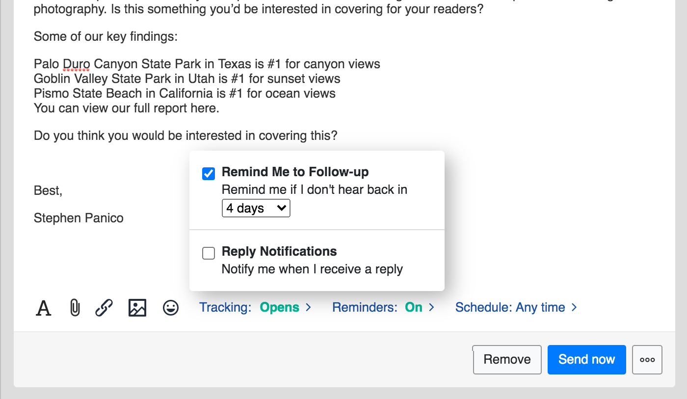 Choose a time to send your outreach message, so your prospects receive your message at exactly the right time.