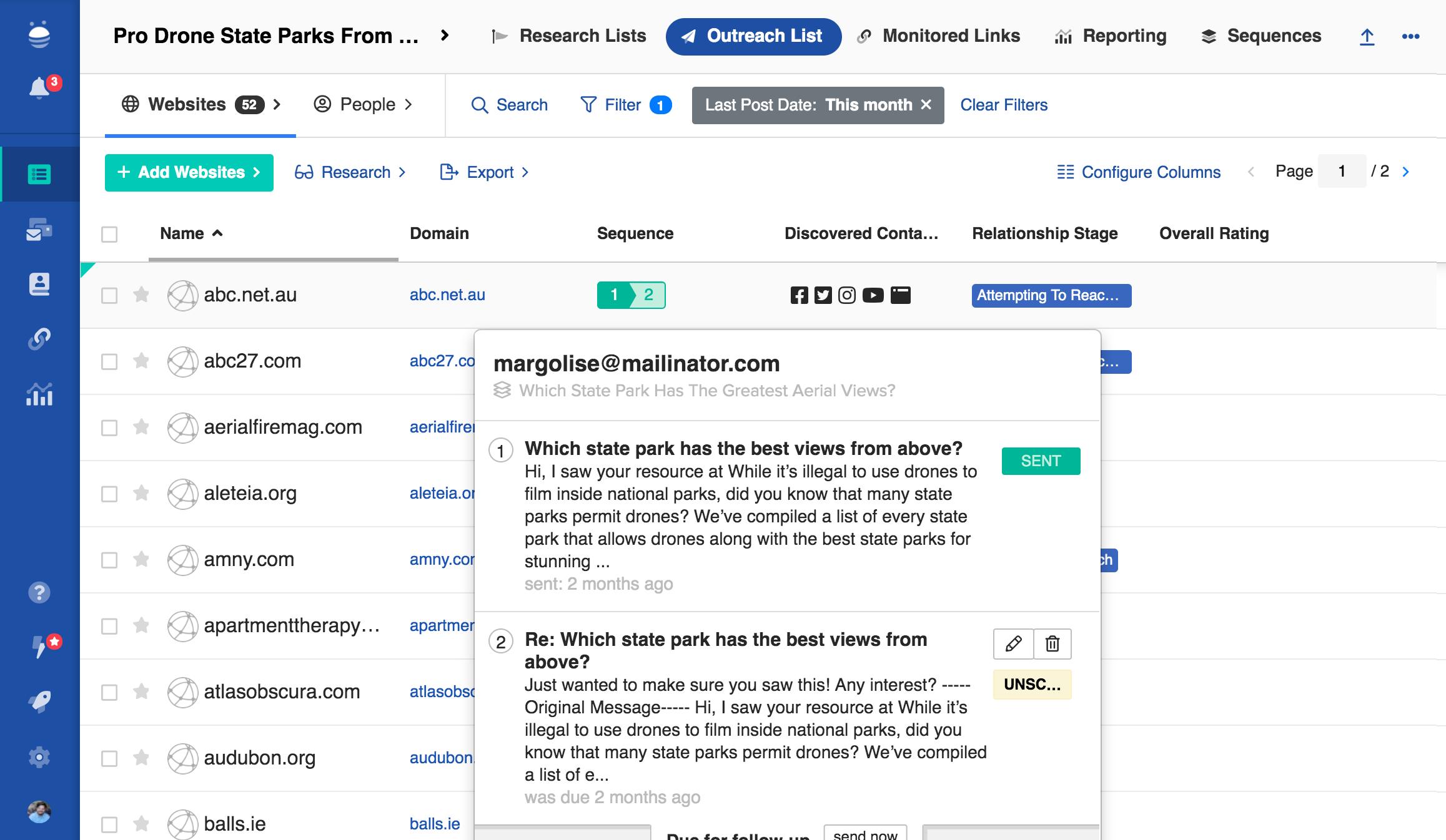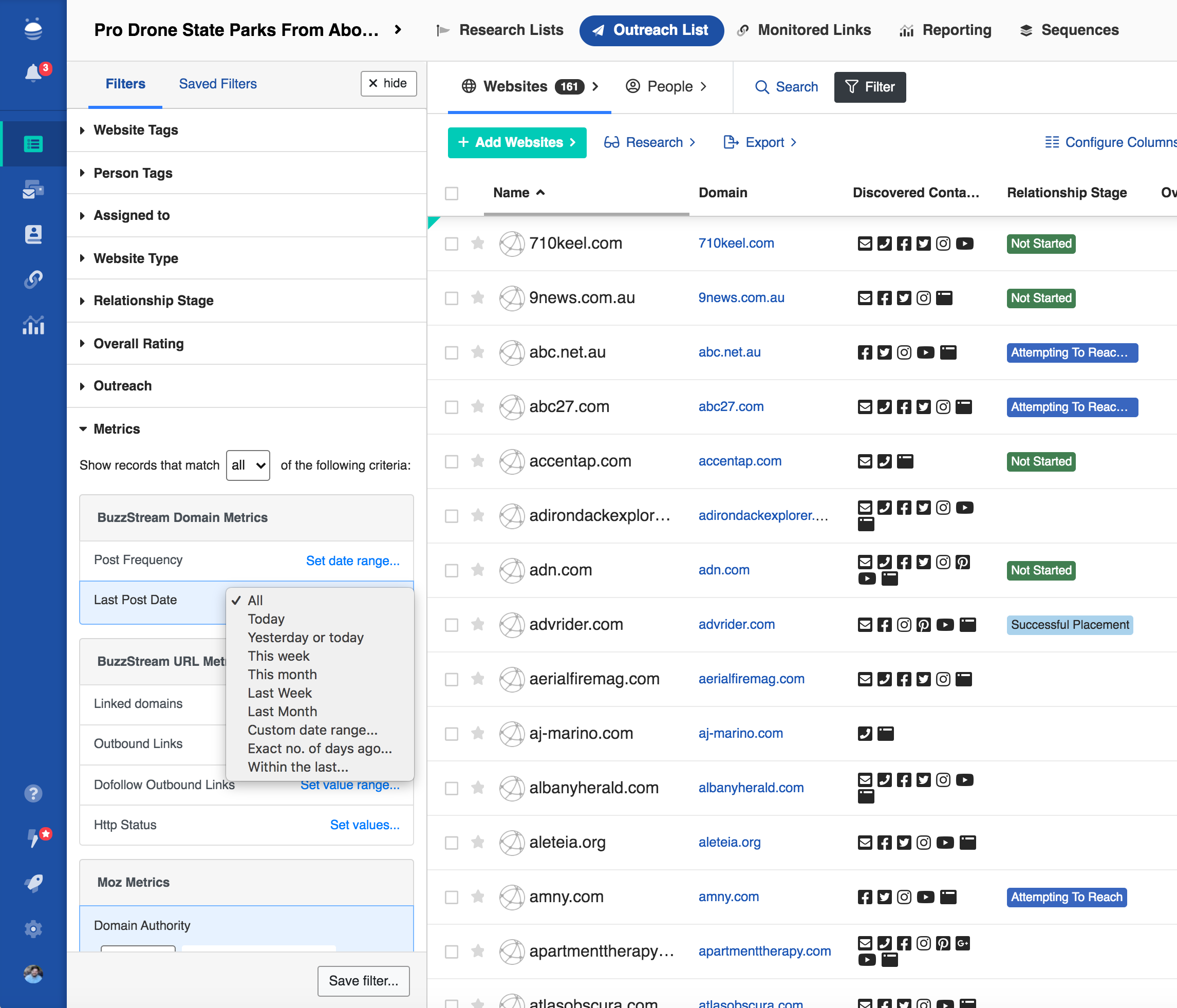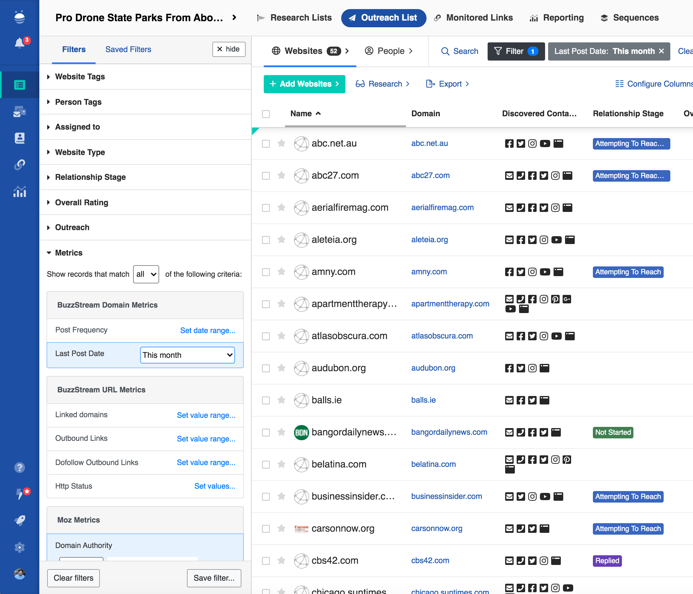 Spend less time keeping track of project activities and more time building relationships. BuzzStream automatically tracks your email and Twitter conversations with contacts.