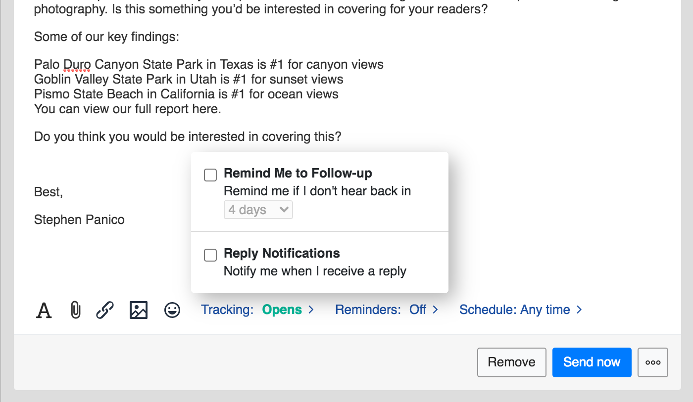 Choose or create a template for your campaign. BuzzStream tracks open rates, click rates and response rates, so you can see what’s working best.