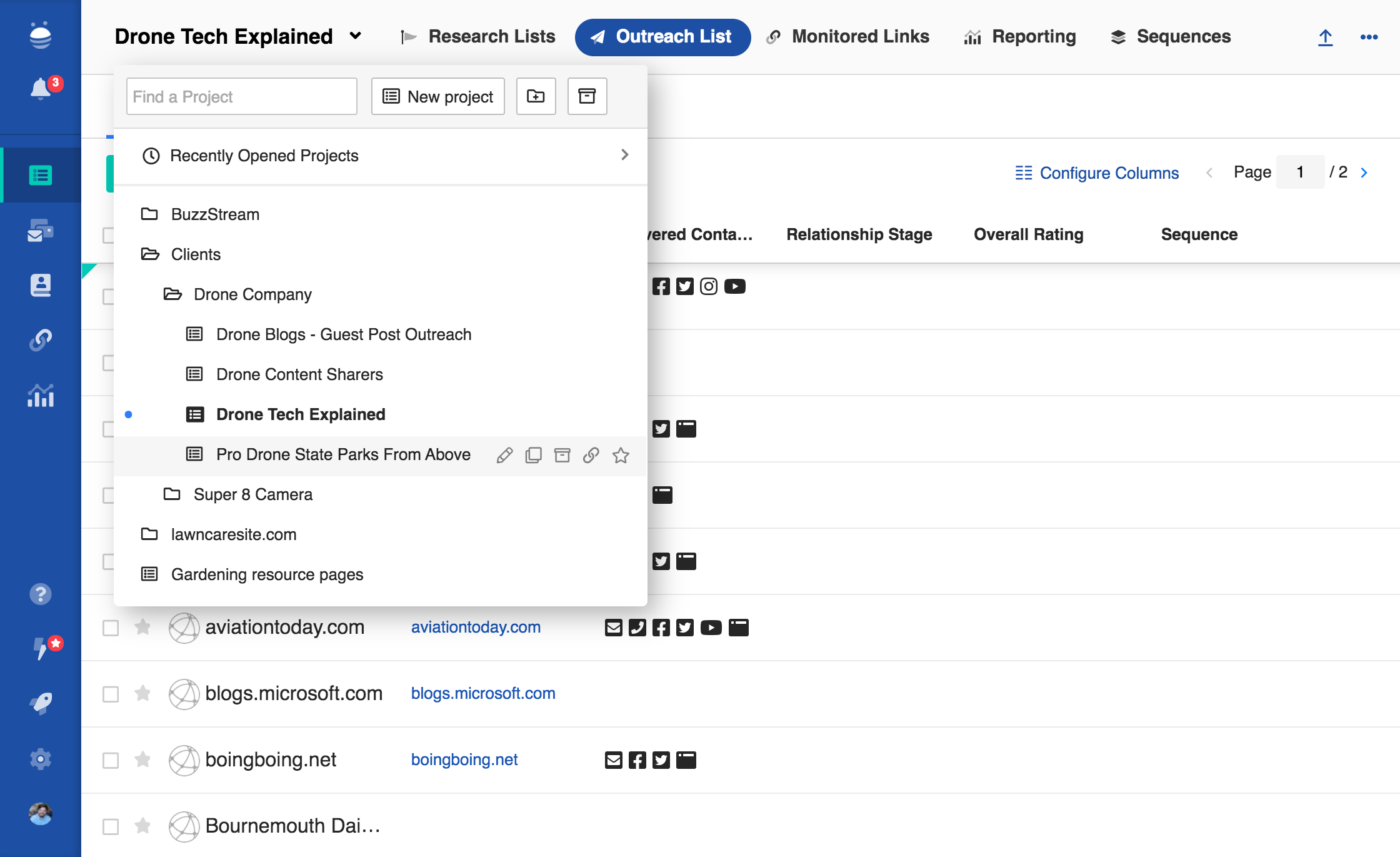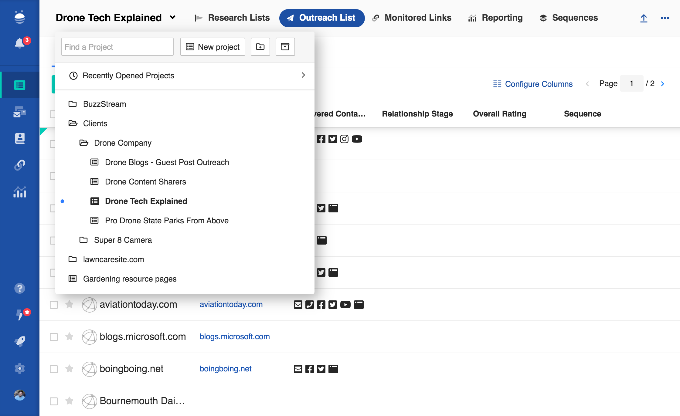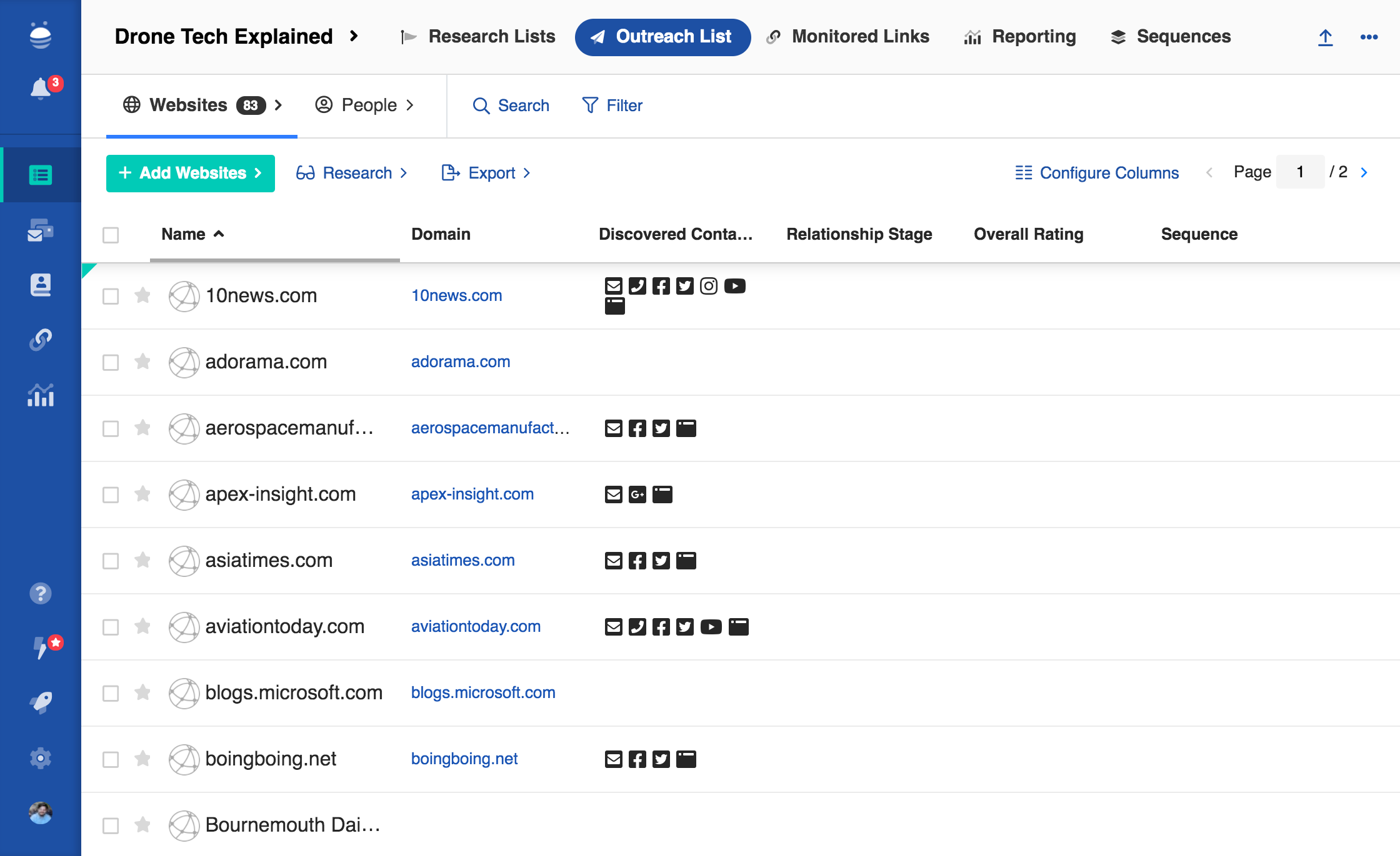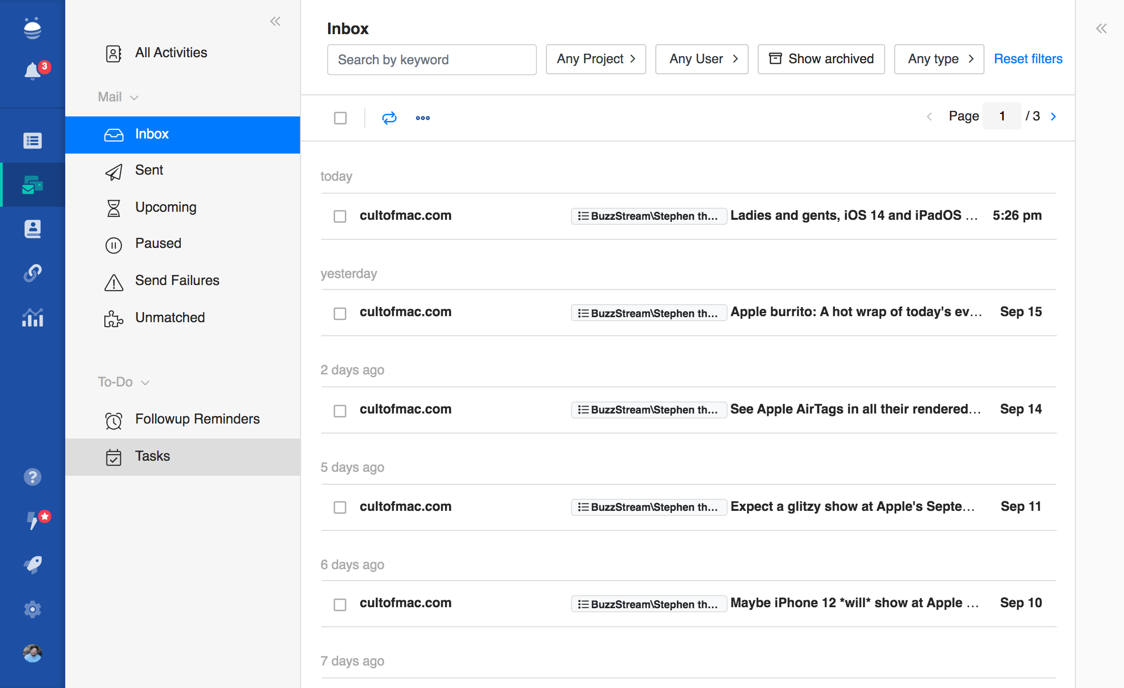 Get a complete view into your team’s recent activity, like notes added or outreach sent. Sort by project or by team member.
