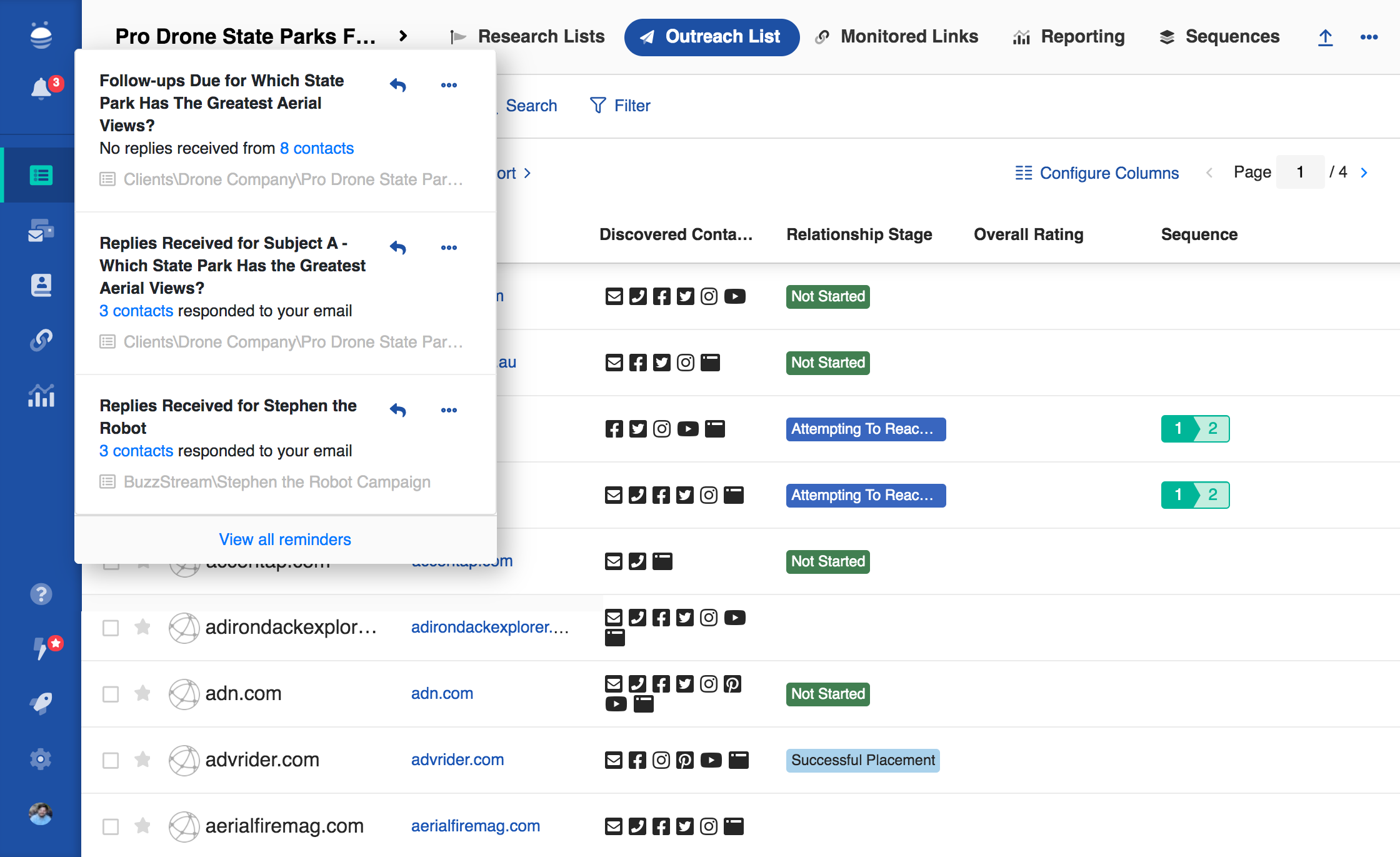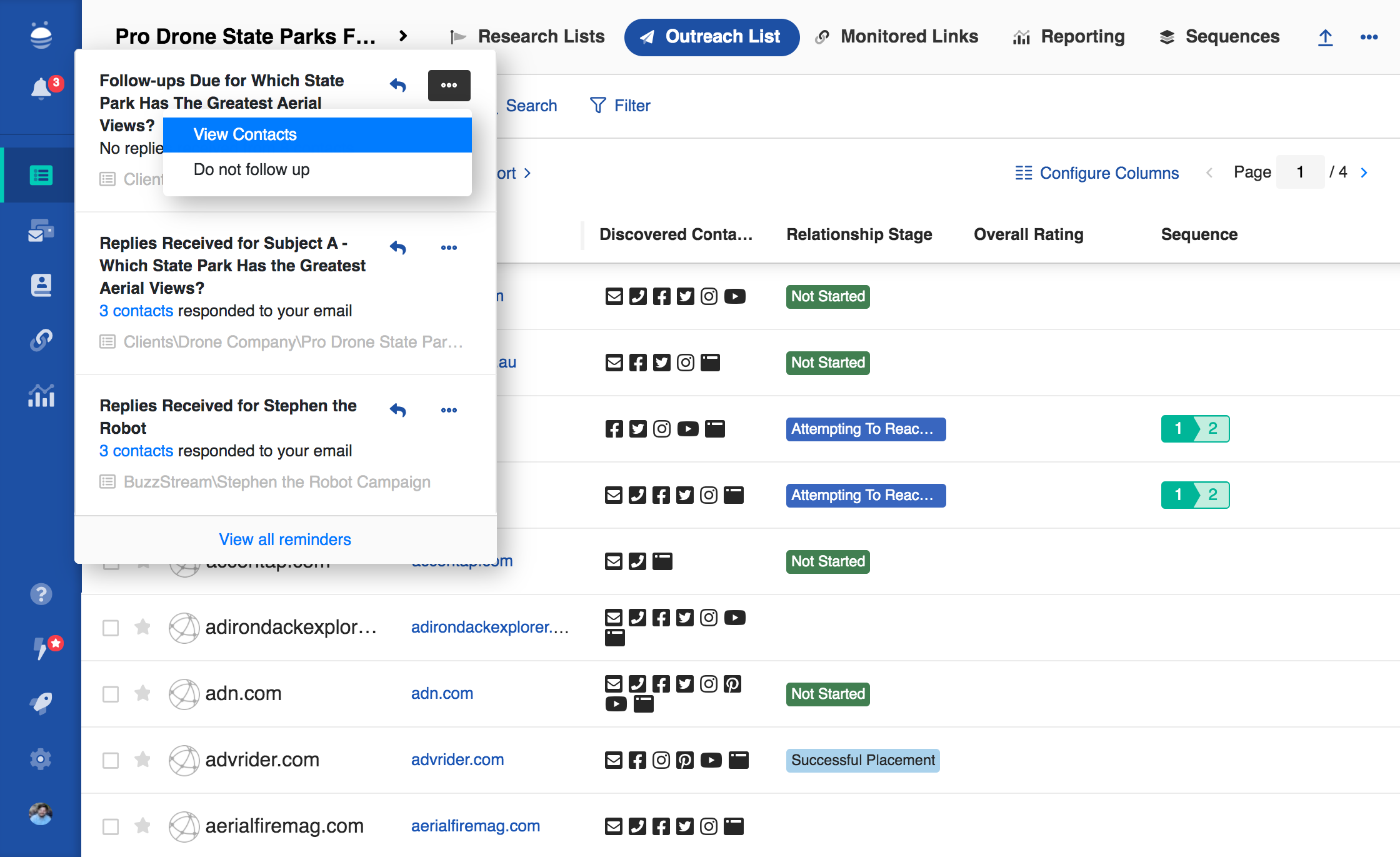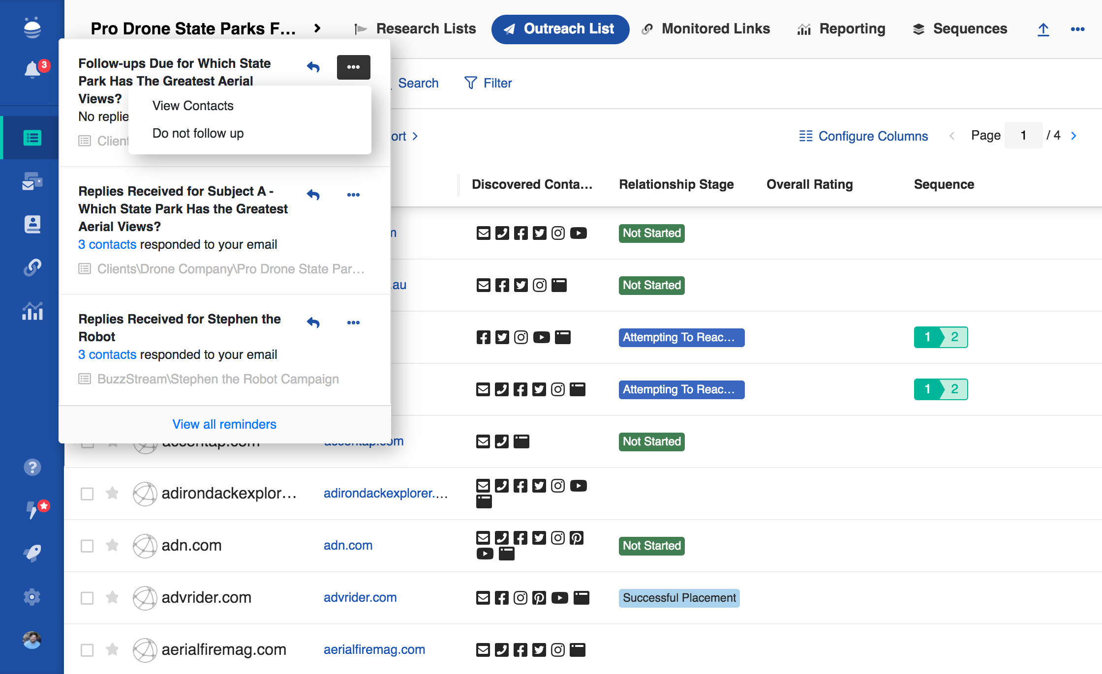 Set alerts to notify you when contacts have or haven’t replied to your outreach. Use filters to see who you’re falling out of touch with.