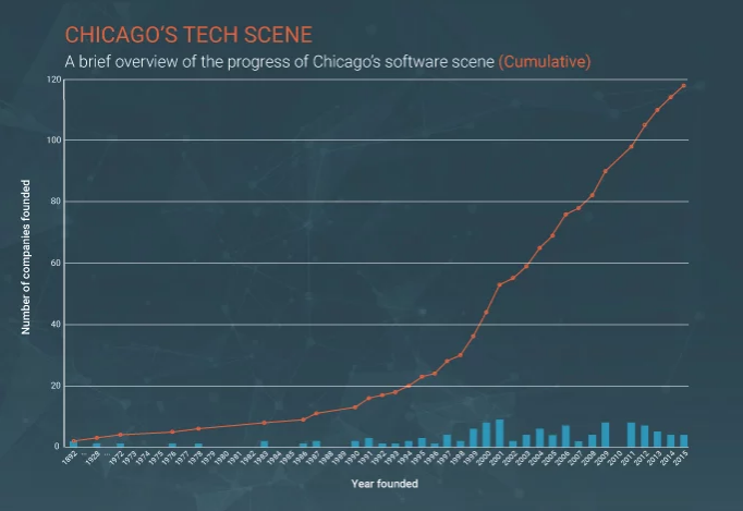 Pieces in the American tech scene series included quotes from major players in the SaaS world, timelines that were custom designed and branded by our design team, and company profiles on all the brands listed in our reports.