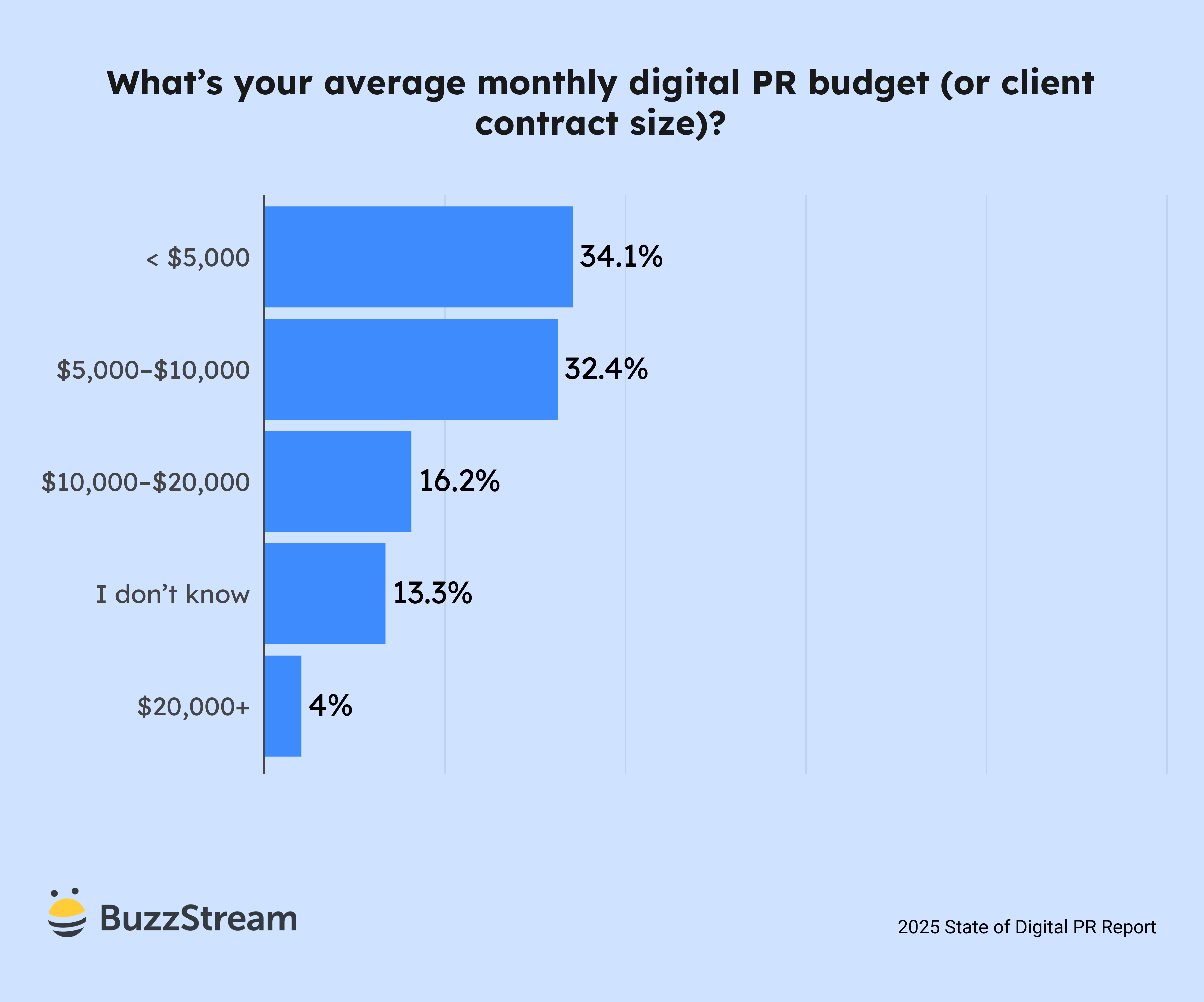 Most respondents (66.5%) operate with budgets below $10,000 per month, with 34.1% less than $5,000.