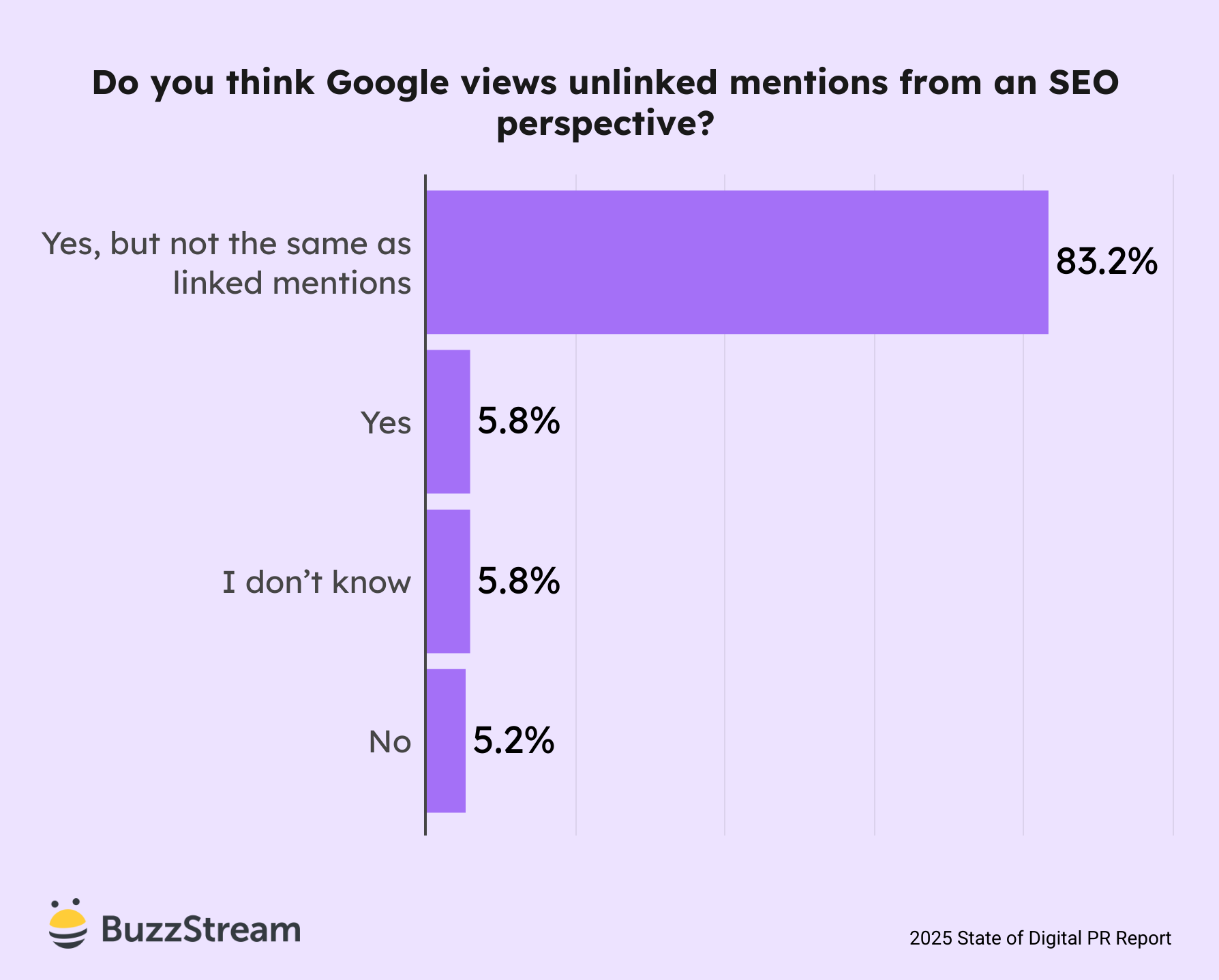 83.2% of digital PRs believe that Google values unlinked mentions for SEO, but not the same as linked mentions.