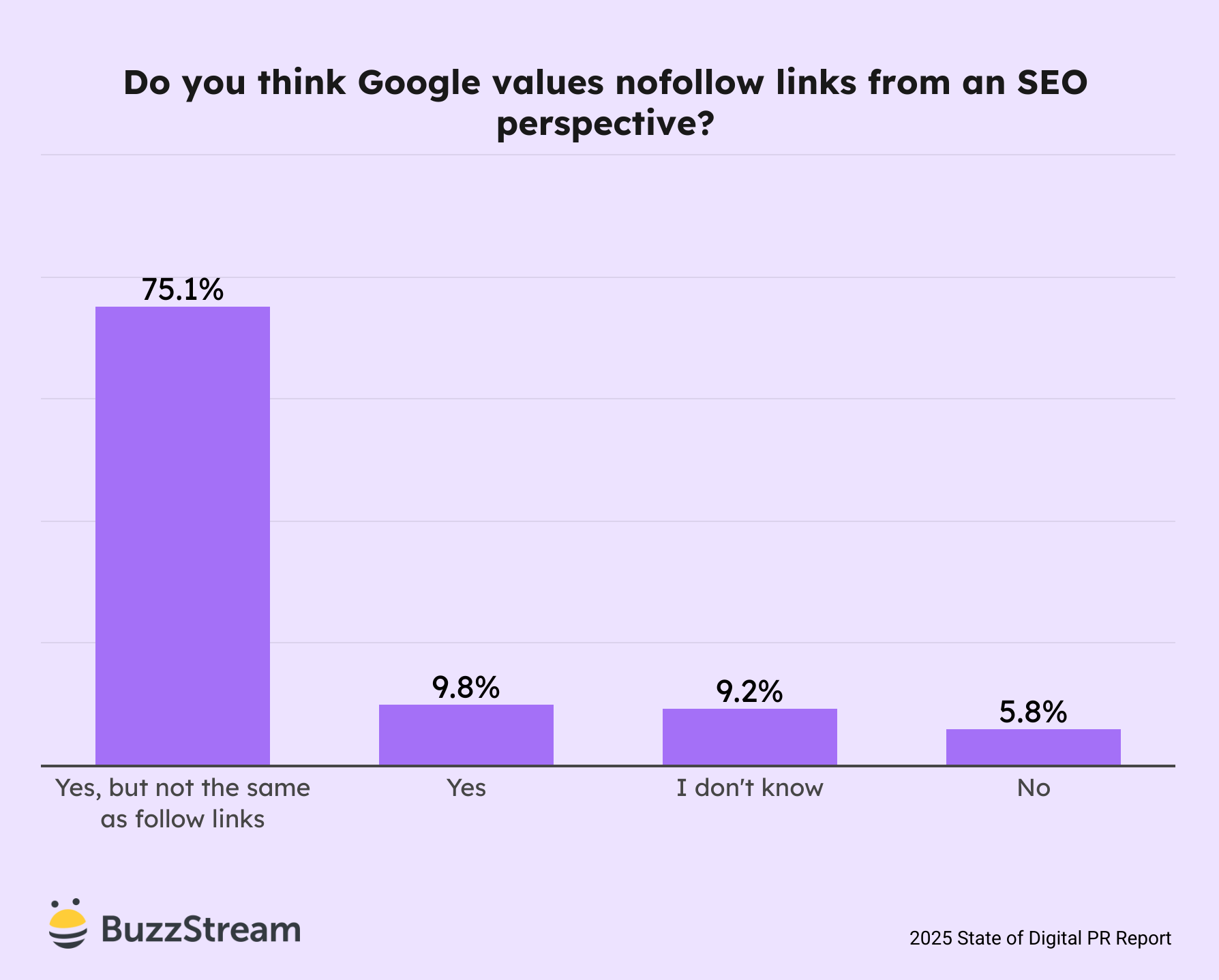 75% of digital PRs believe that Google values nofollow links, but not the same as follow links.