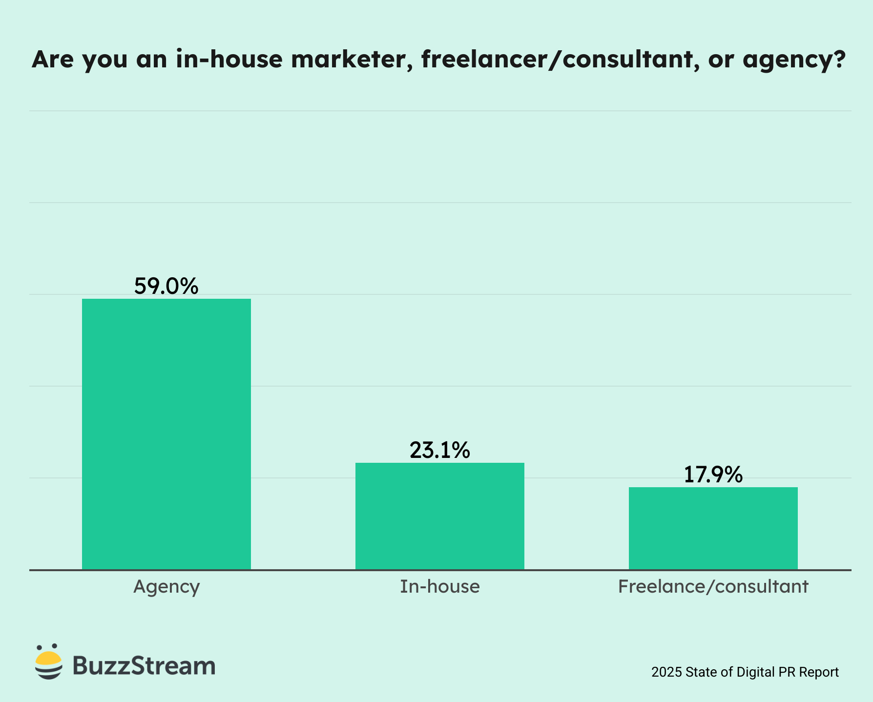 The majority of our respondents (59%) work in agencies, while the remaining 23.1% are in-house and 17.9% are freelancers/consultants.