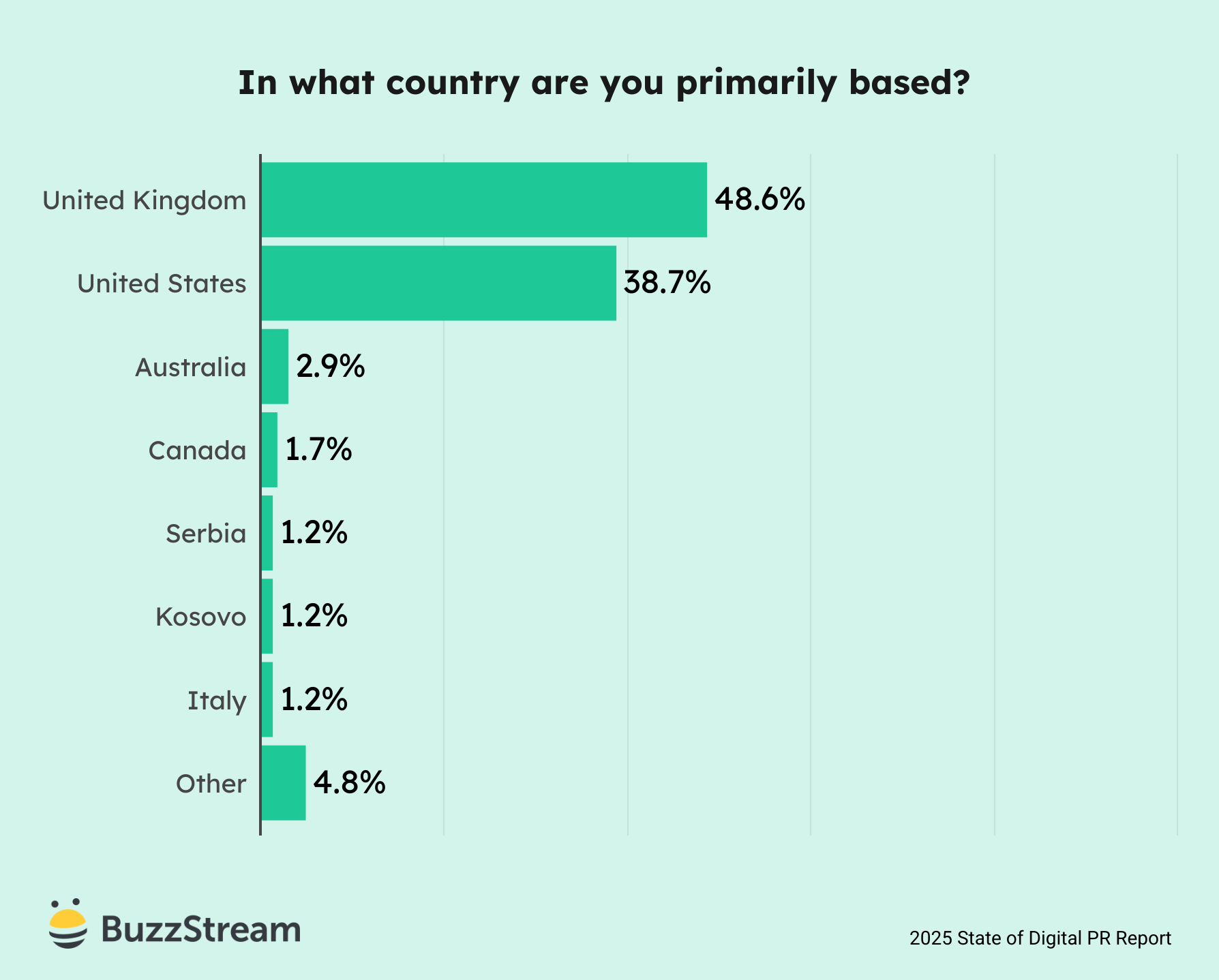 Most of our respondents (48.6%) were from the UK, with 38.7% from the US.