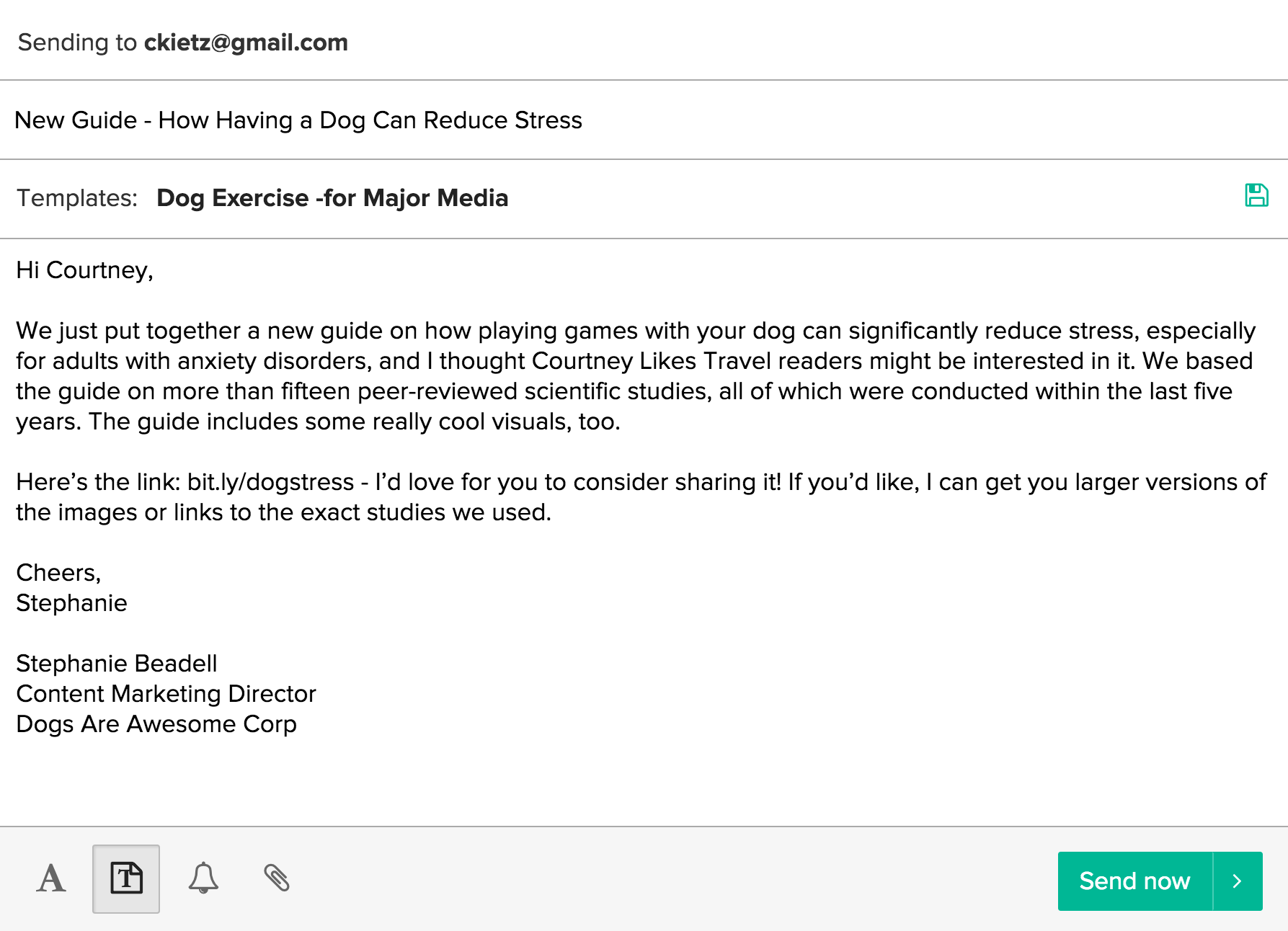 Pitch your content to influencers with a full view of conversation history, notes, tweets, recent posts, social details, and more. Now you can pitch faster AND better – and get your content the attention it deserves.