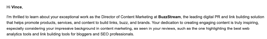 I hate nothing more than getting an email that has fake personalization like this clearly AI-generated block of nonsense: