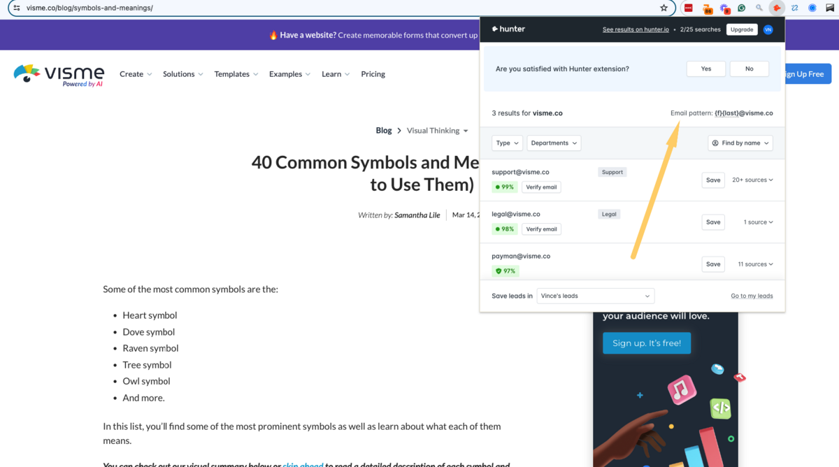Let’s try Hunter for another contact like Visme’s Samantha Lile.
