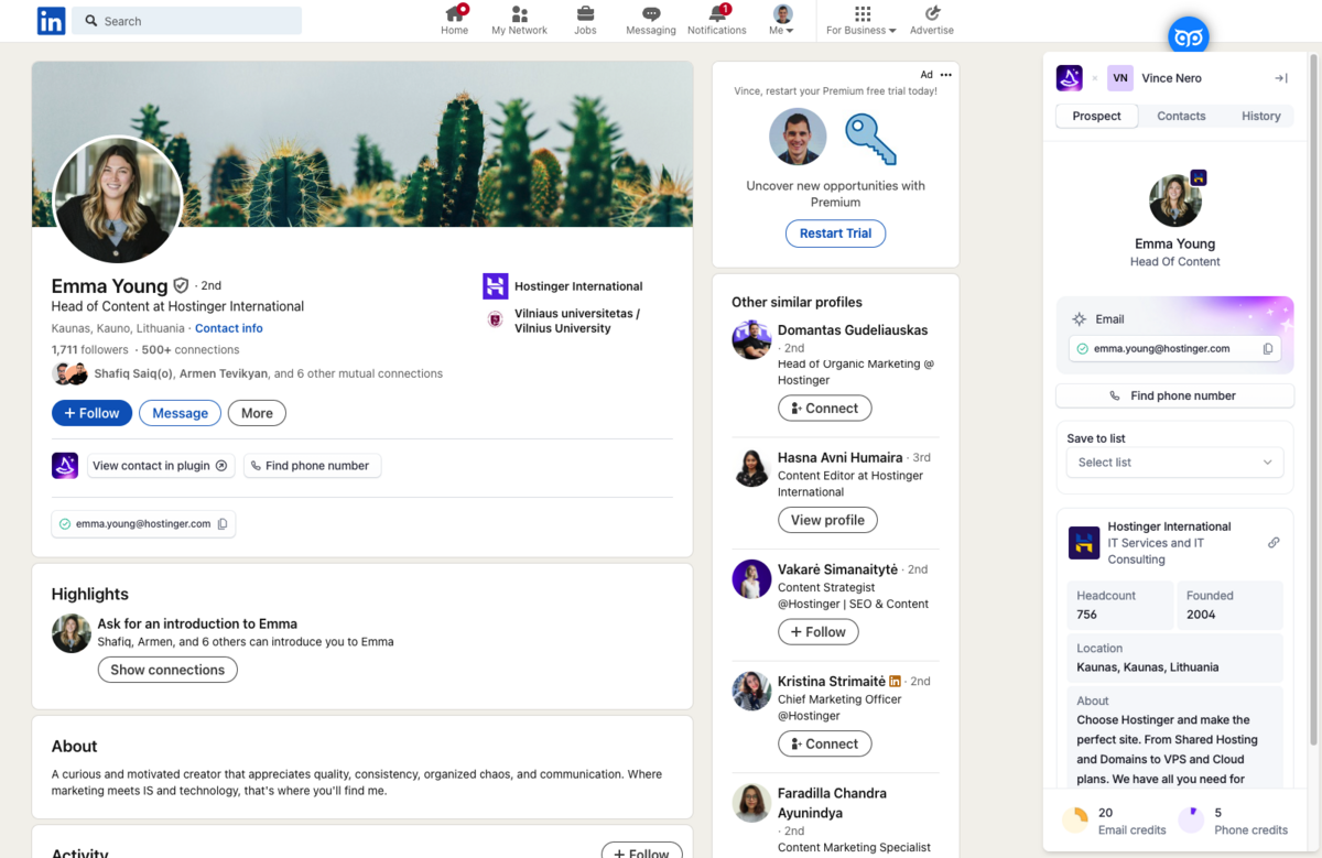 If you don’t have a tool like Wiza, or can’t find your prospect on Google, you can always try Hunter.