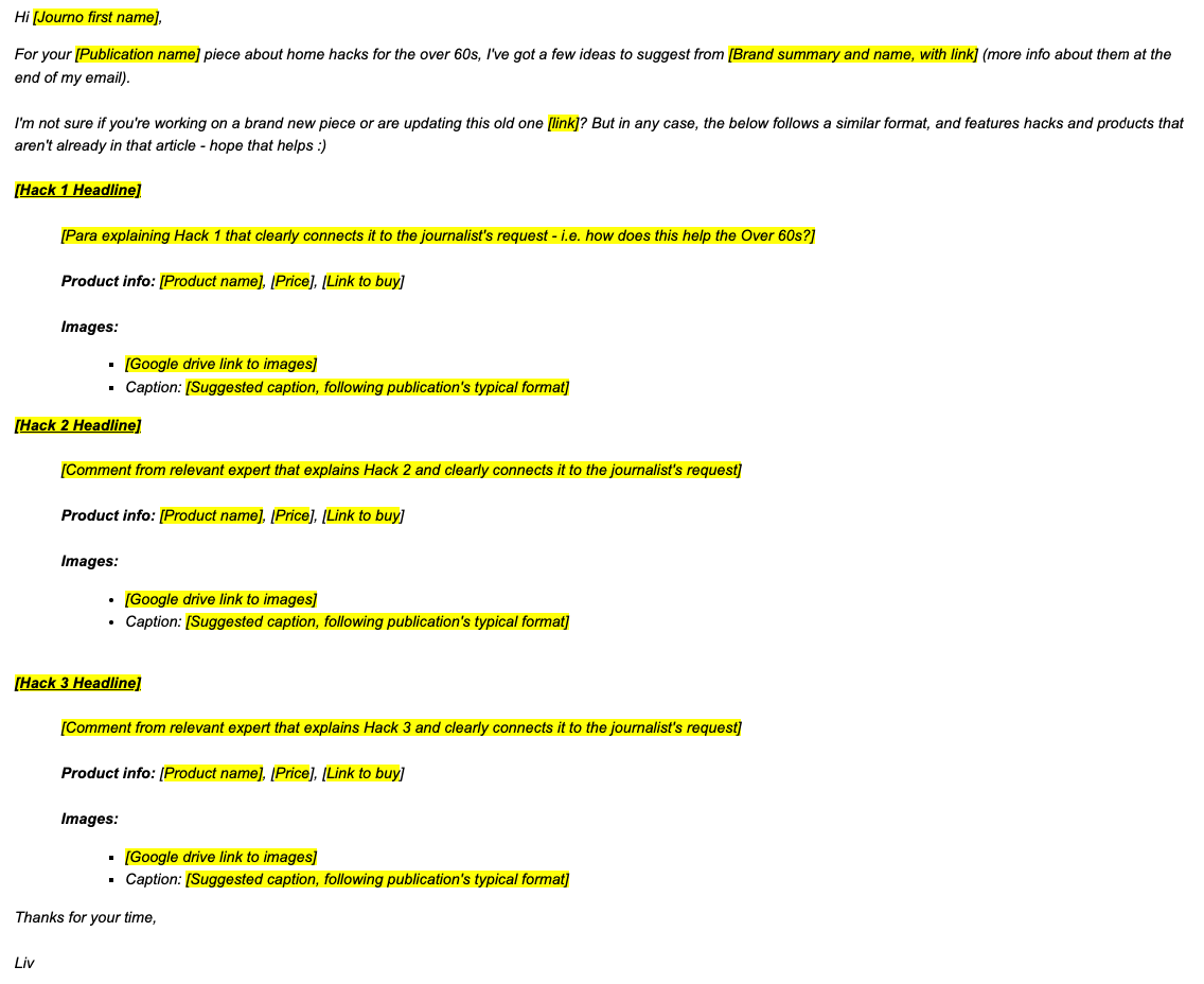 PRs often vary on the amount of information they share within a post. The previous email template could easily be used to include an image or tables, but I wanted to provide an alternative from another expert in the space.