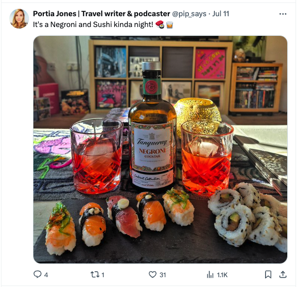 For example, freelance travel journalist Portia Jones posted about Negronis and sushi.