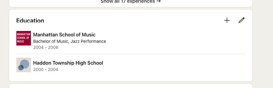 Education history is always available on LinkedIn if you scroll down on a user’s profile page: