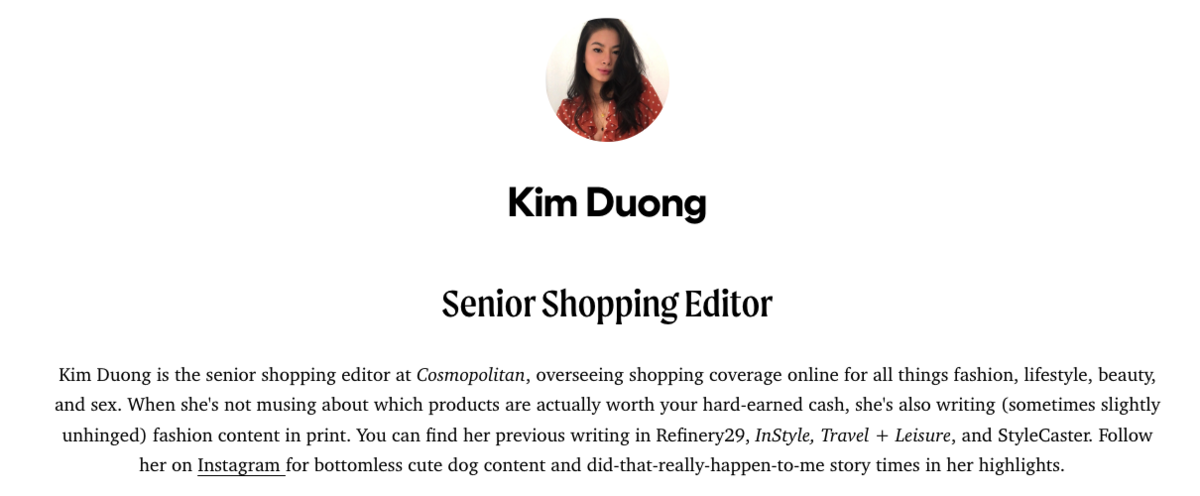 Even though they work at a publication that may be relevant to the study, their beat covers shopping— specifically fashion, lifestyle, beauty, and sex.
