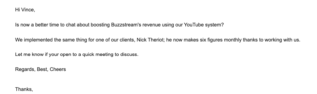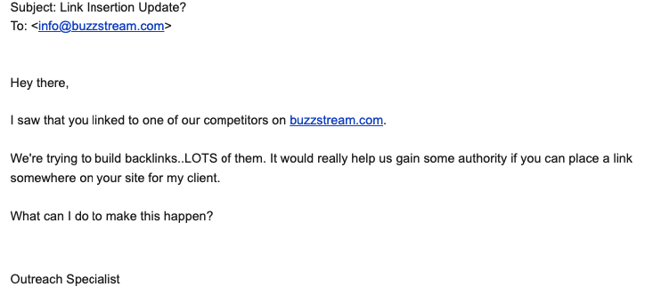 We are BuzzStream with a capital S. It may seem trivial, but it tells me that this person didn’t do the homework.