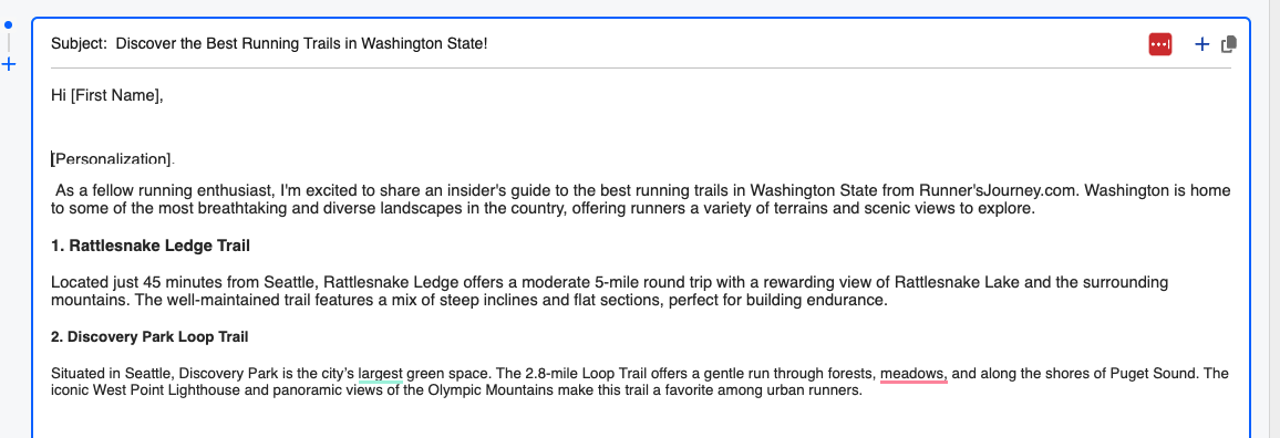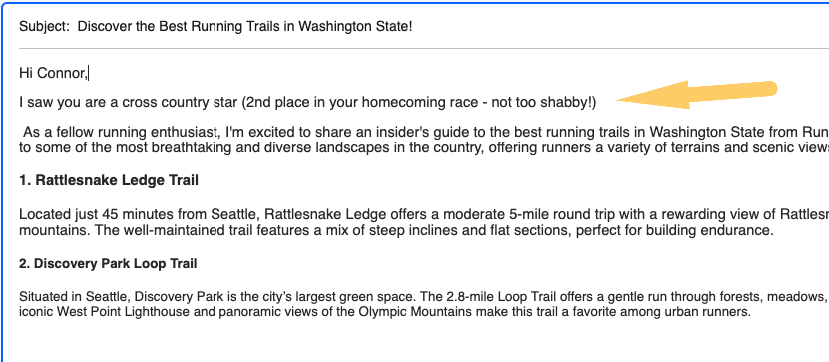 For instance, say I was pitching a post about the best running trails in Washington State, I’d insert my Custom Field at the start of my pitch: