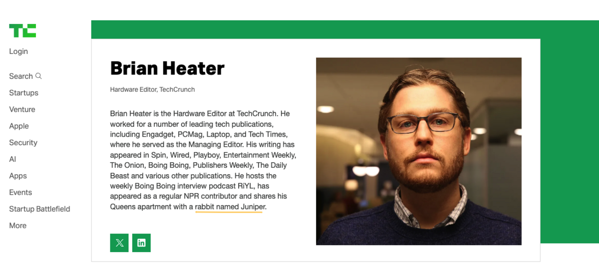 For instance, Brian Heater from TechCrunch also has a rabbit.