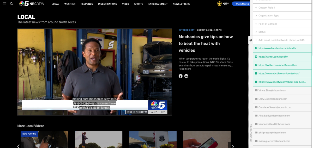 Clicking into them, I see that some are news stations, which I can then dig deeper to find the correct contact using the steps above.