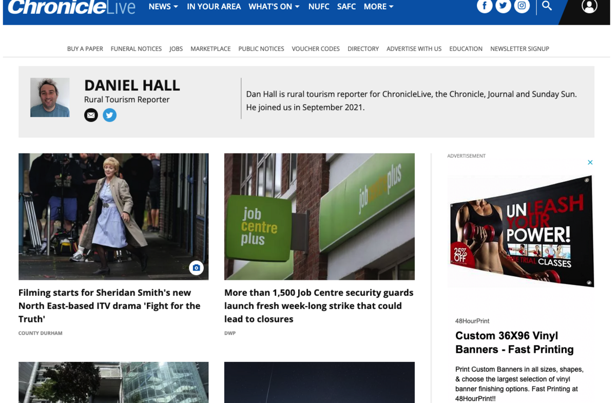 For instance, Daniel Hall is a rural tourism reporter for ChronicleLive, the Chronicle, Journal, and Sunday Sun.
