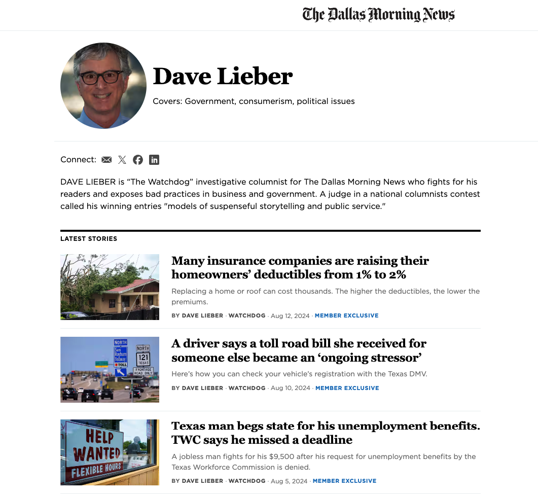 For example, the first result is a story from Dave Lieber, who writes about consumerism.