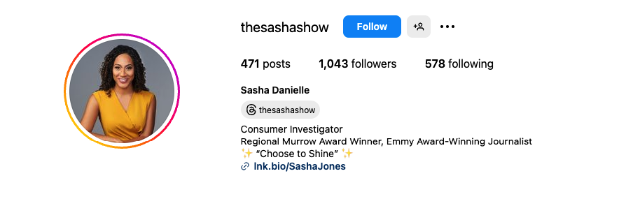 Or I may find individual reporters’ profiles, like this one from @TheSashaShow: