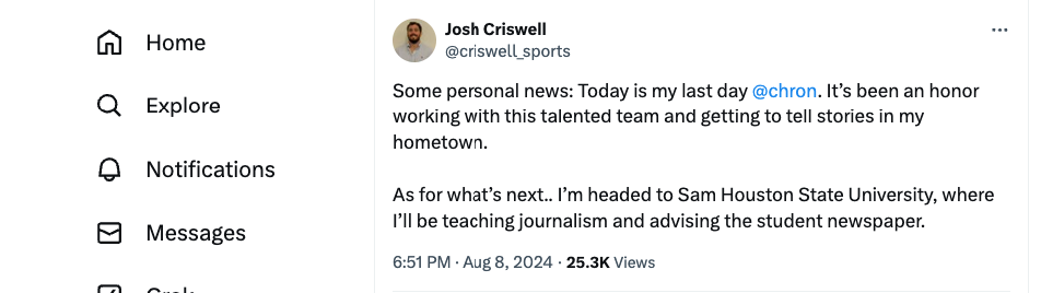 According to his bio, he is an anchor, which is not my first choice, but it looks like he’s covered two car-related Texas news stories very recently.