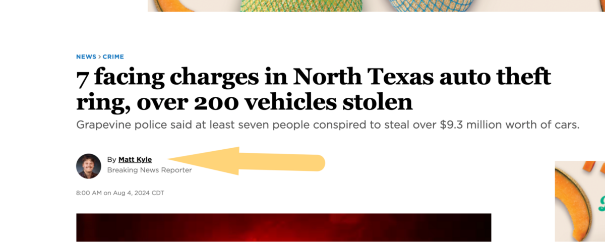 The first result is Dallas News for a piece on auto theft in North Texas.