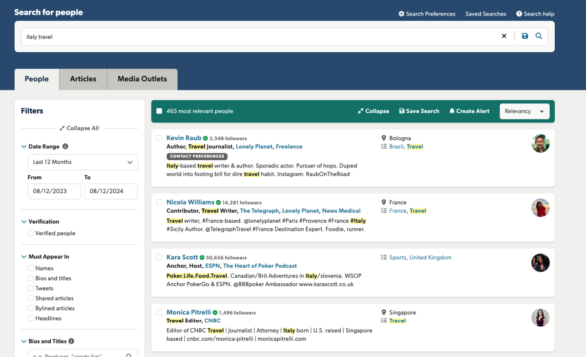 For example, if I wanted to find a journalist who writes about Italy travel tips.