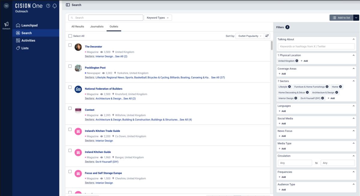 “The filtered search function allows the team to filter contacts based on specific criteria such as industry, publication, location, job title, etc. This enables highly targeted outreach, which has resulted in thousands of pieces of coverage over the years.”