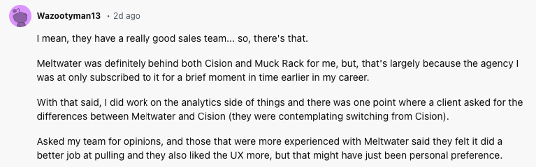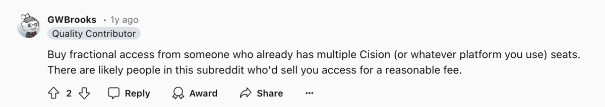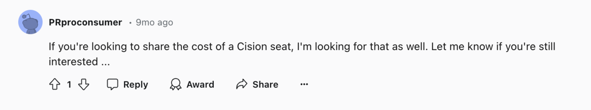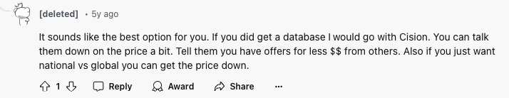 One Reddit user offered this advice when dealing with Cision’s sales team (which is generally great advice when dealing with any sales team at a large company):