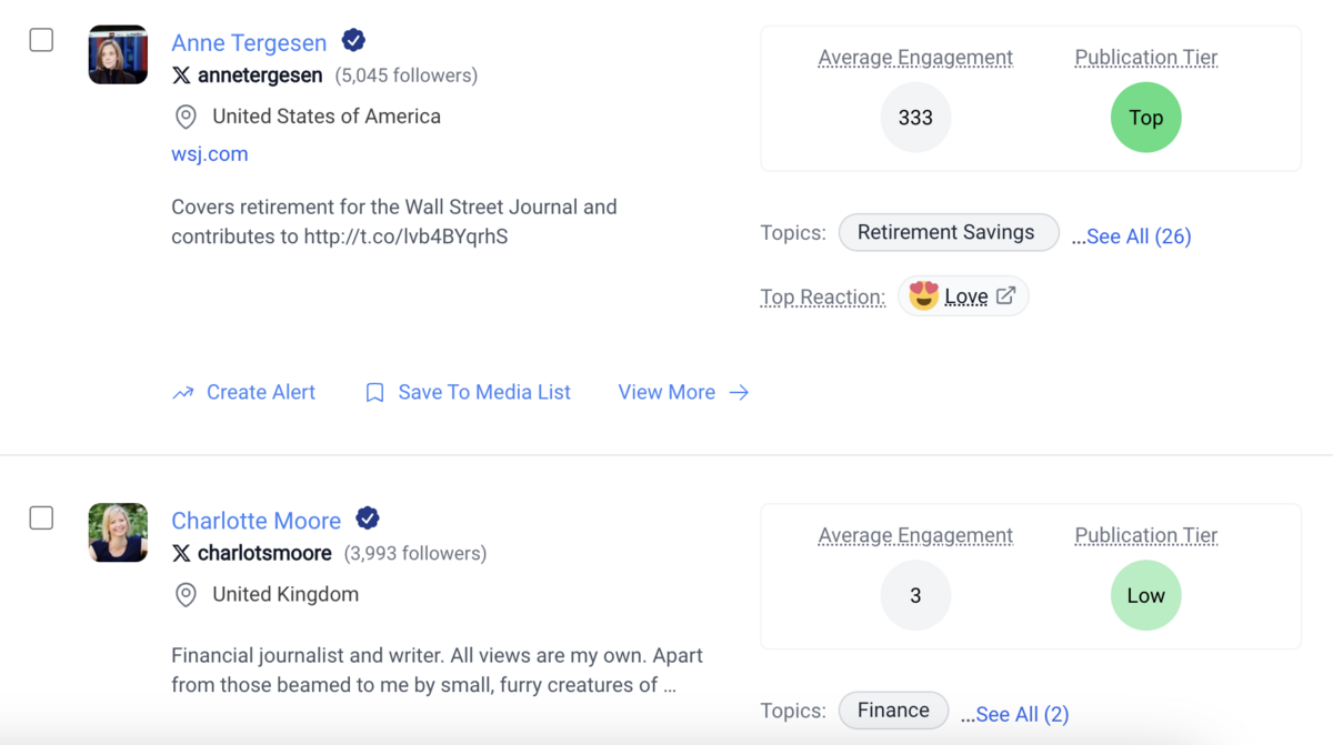 It will even alert you about current journalists’ moves on existing lists you’ve created in the past.