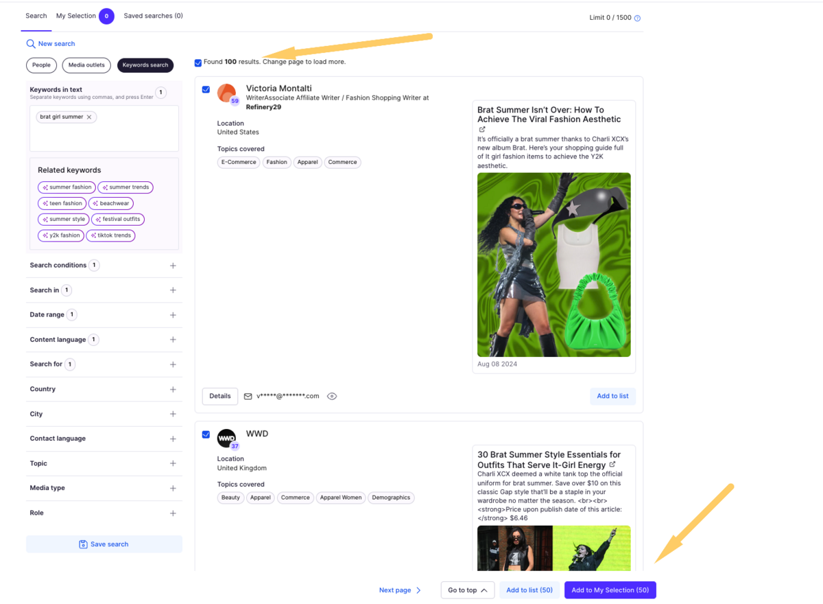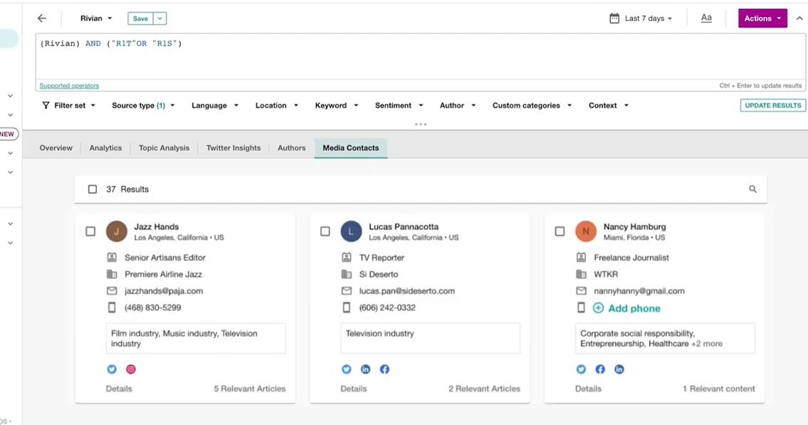 With ListIQ, I select specific articles from the search results and choose the information I want to find about the journalists.
