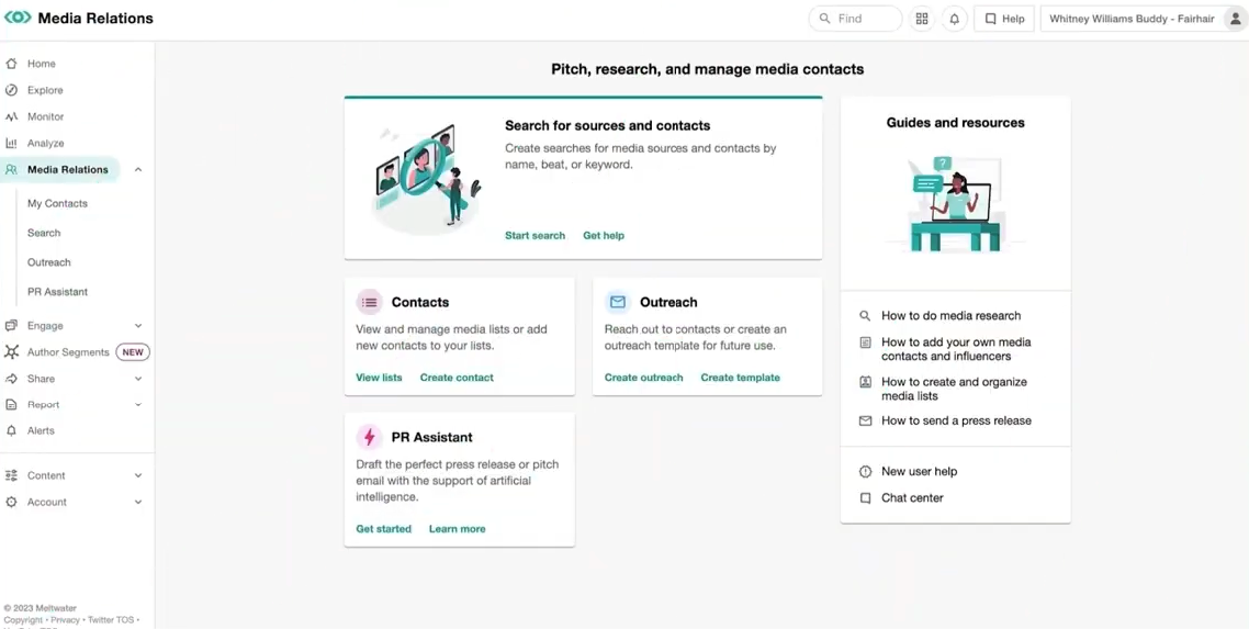 Meltwater is the other of the two significant legacy all-in-one PR software tools besides Cision and MuckRack.