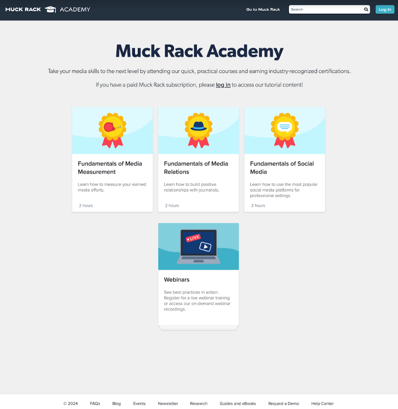 “While these are still in their relative infancy, the future of these integrations looks promising. But as an organization, our agency loves the Muck Rack Academy feature!” which you can see below: