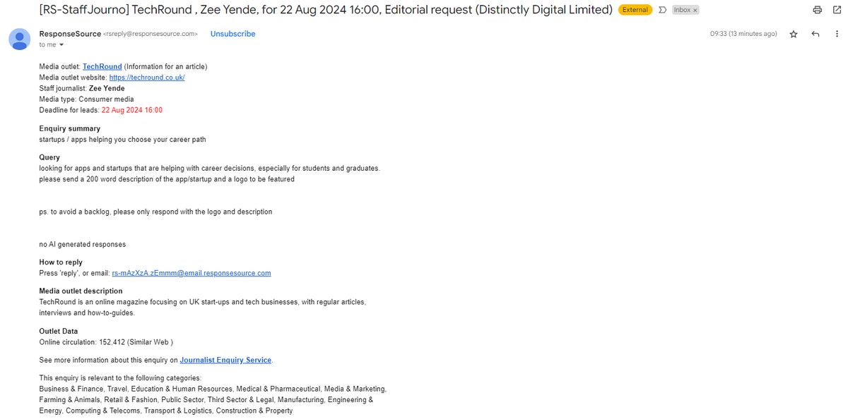 I’m checking who the journalist is, reading their bio, and reviewing recent articles, and then I’m digging around to try to find their email address.