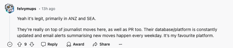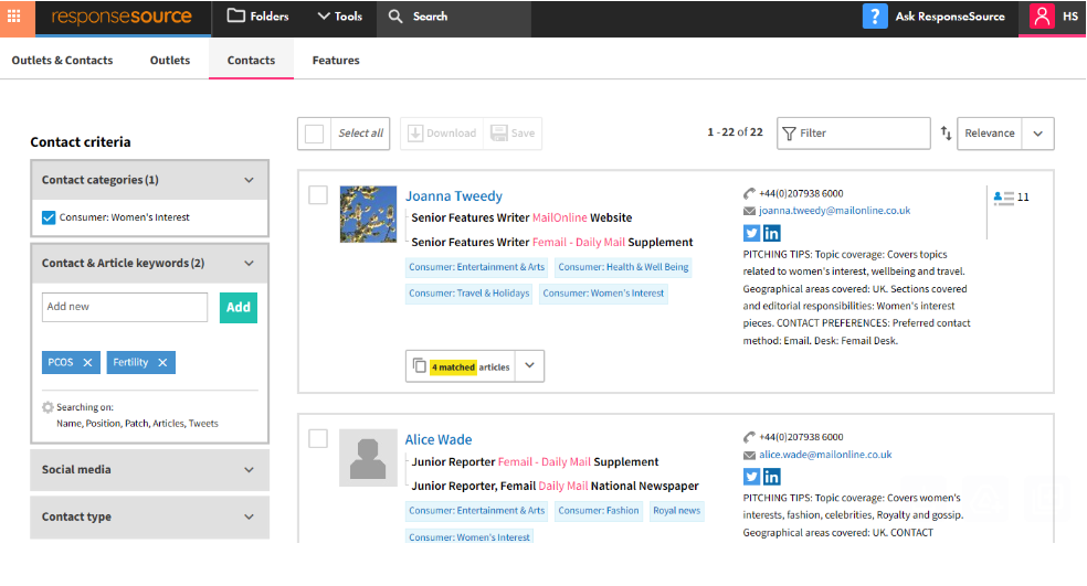 “Their search function, in general, has a huge range of filters you can apply to find the perfect journalist for the story you’re pitching – you can get granular, which is great!”