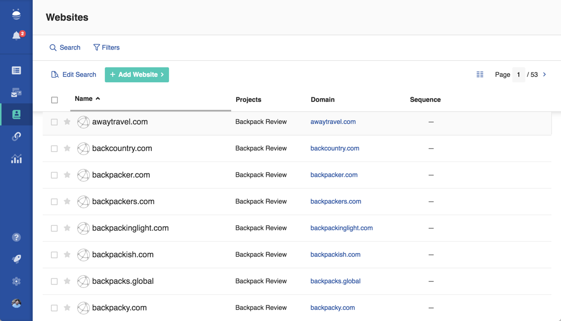 Using this section you can quickly get information on specific People or Websites, review whether specific people or websites are in your account, or even populate current campaigns with People or Websites you’ve reached out to in the past.