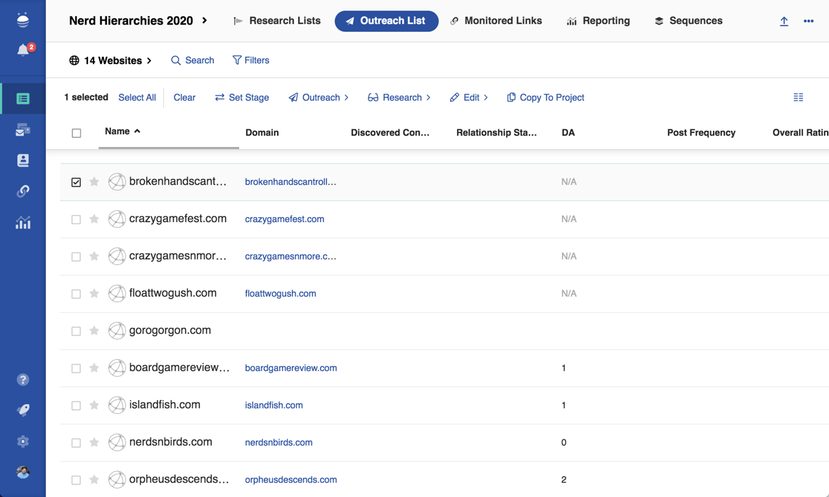 There’s a good chance that the Outreach List will be very familiar to you. This is where you’ll actually interact most with your campaign in BuzzStream. Here’s where you’ll manage and send outreach to the People and Websites in your campaign.