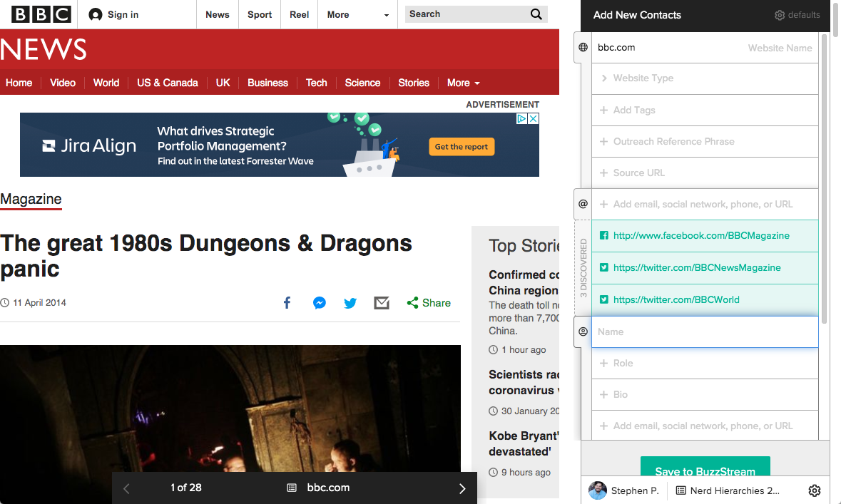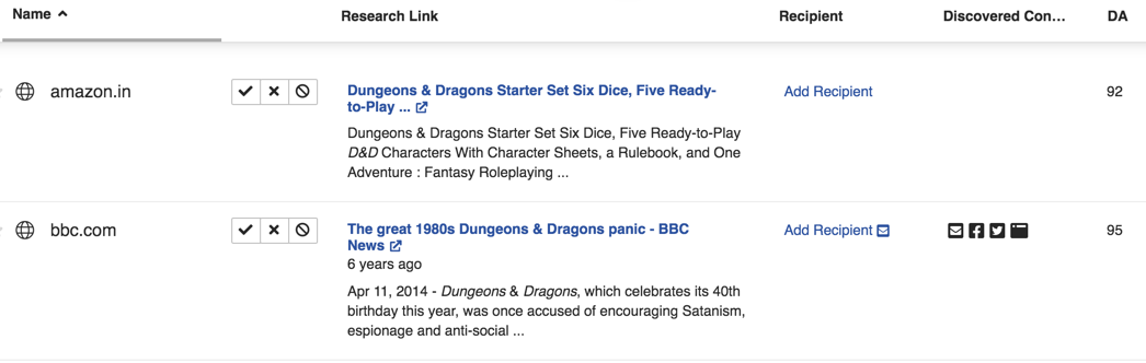Research lists give you a place to store and qualify prospects that are potentially a good fit for your campaign. Once you’ve added a prospect, you’ll see that BuzzStream has done a ton of work for you, including pulling bylines, titles, meta descriptions, contact info and metrics.