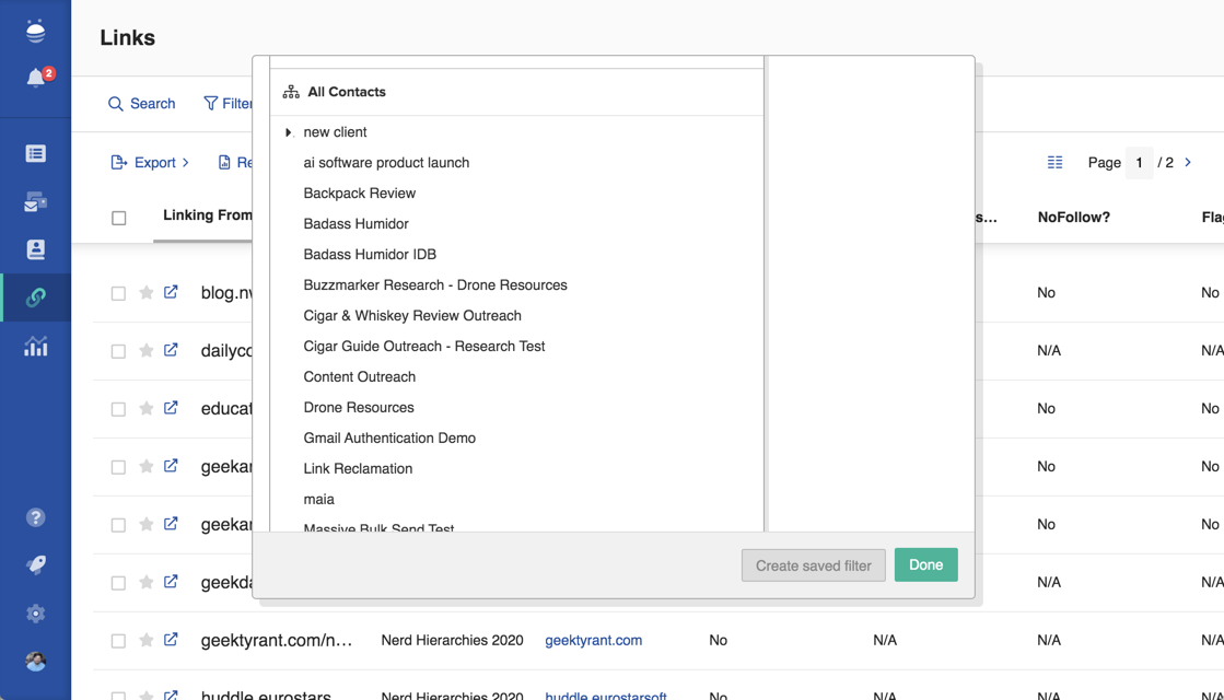 In Links you can search and filter to find links across your account in any project, giving you a great way to review total placements and active links.