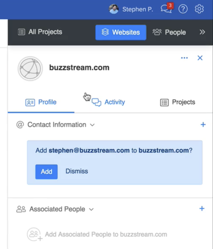 Let’s stick with the example mentioned above and say you got a response from someone running a website you’ve already got in your BuzzStream account, but the email address the person responded from is not currently associated with the website.