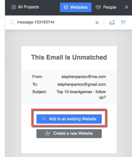 When you click that folder, you’ll be able to see all of the emails for your associated email address that aren’t currently tied to Websites or People.
