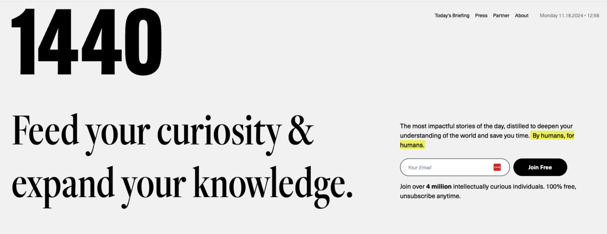 I’ve probably subscribed to hundreds of generic news roundups. I subscribed to 1440 about five years ago, and it has consistently remained a quality addition to my inbox.