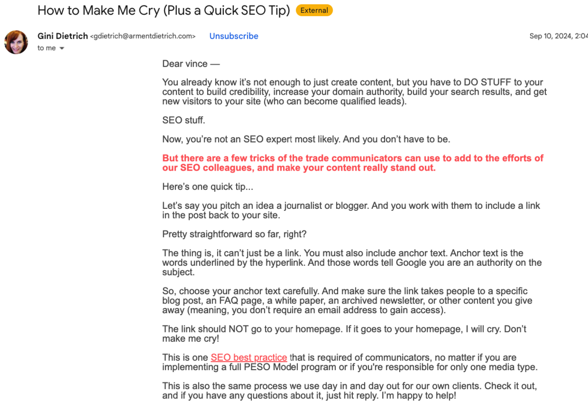 Also See: Gini Dietrich’s Spin Sucks Newsletter