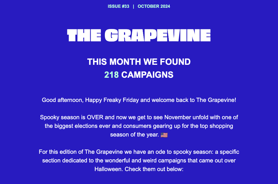 The Grapevine offers a monthly snapshot of the best campaigns across industries and insightful year-end trends that can be used for ideation and inspiration.