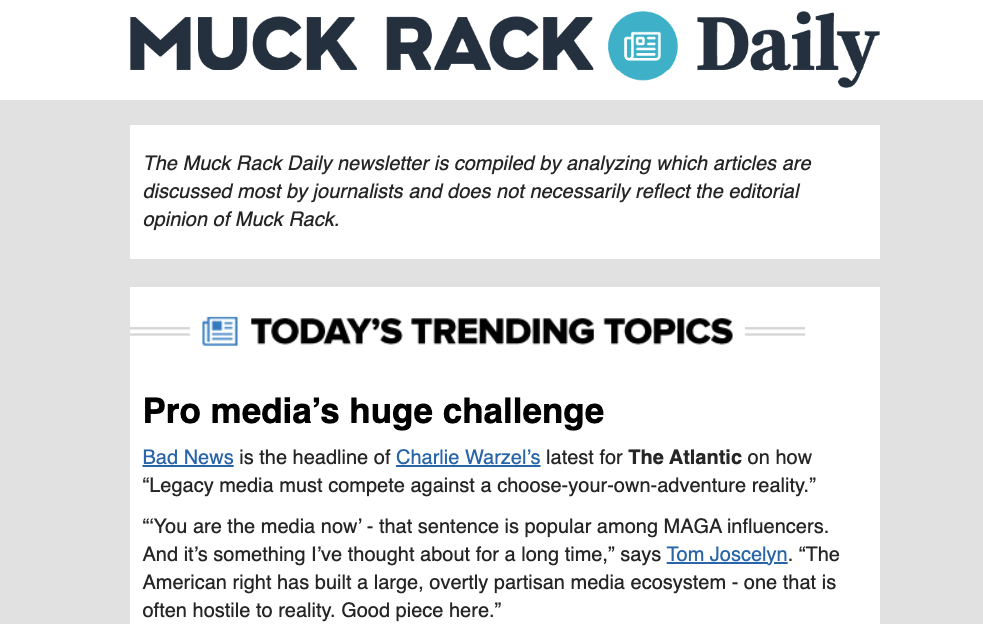 Muck Rack Daily offers quick insights into journalism and highlights trends and top journalists in an easy-to-digest format.