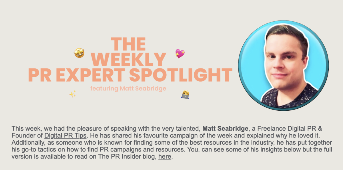 This newsletter is an invaluable tool for inspiring and ideating. Finding great digital PR examples, campaigns and resources takes a lot of work and time.