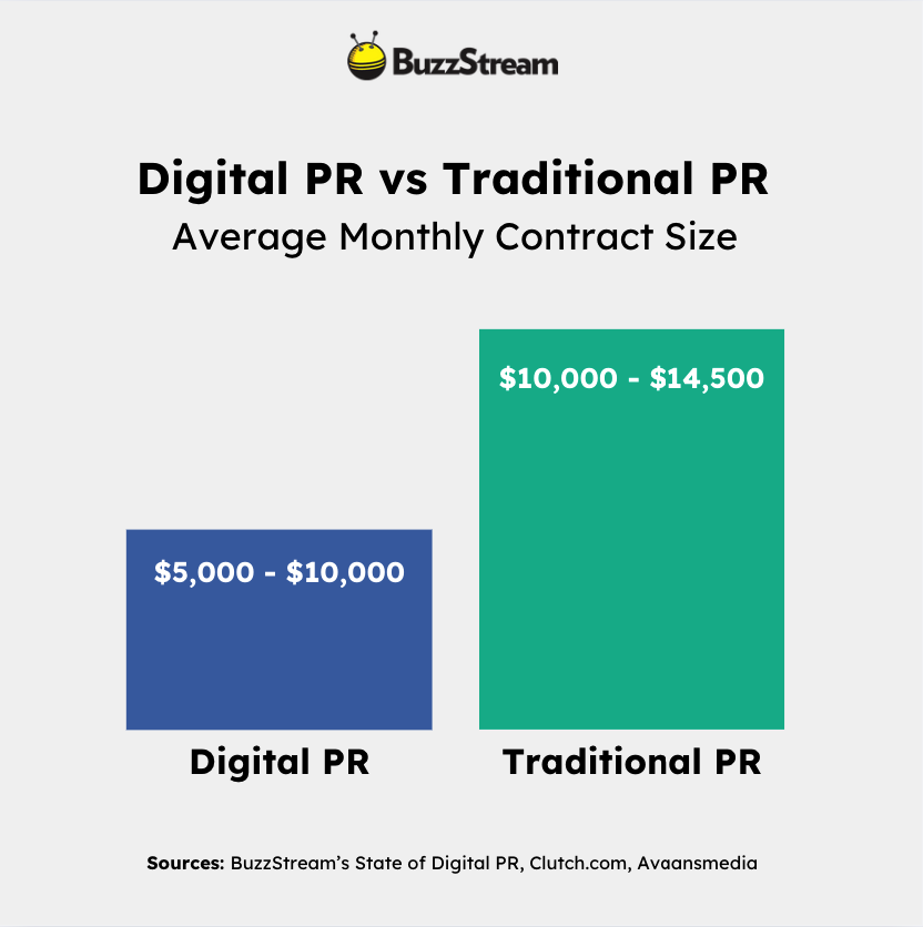 Based on our research, the average monthly contract size for digital PRs is $5,000-$10,000.